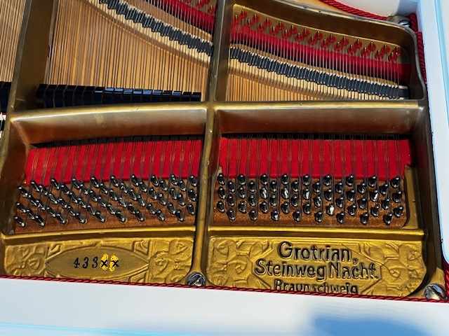 Der Flügel Grotrian Steinweg Modell 160 weiss wurde nun in unserer KlavierWerkstatt mit handwerklicher Sorgfalt umfassend und anspruchsvoll mit vielen Neuteilen überholt.