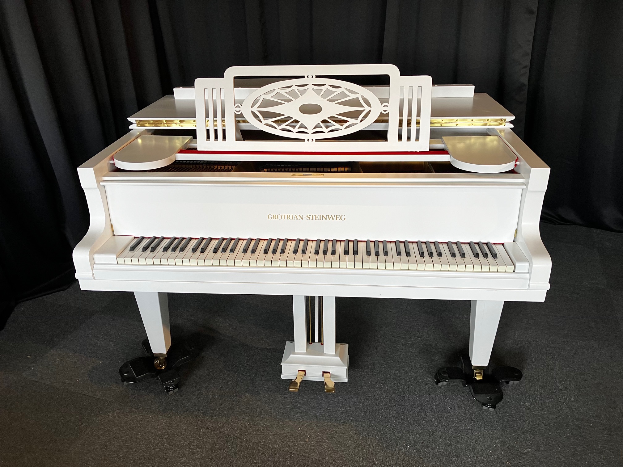 Dieser klassische Flügel steht mit seinen bemerkenswerten Eigenschaften in Klang und Spielart für meisterhafte Handwerkskunst und große Leidenschaft im deutschen Klavierbau. Der tragende, klare Klang mit seinem eindrucksvollen Volumen, ein kraftvoller Bass und eine präzise Spielart sind die großen und typischen Attribute dieses kleinen Grotrian-Flügels.